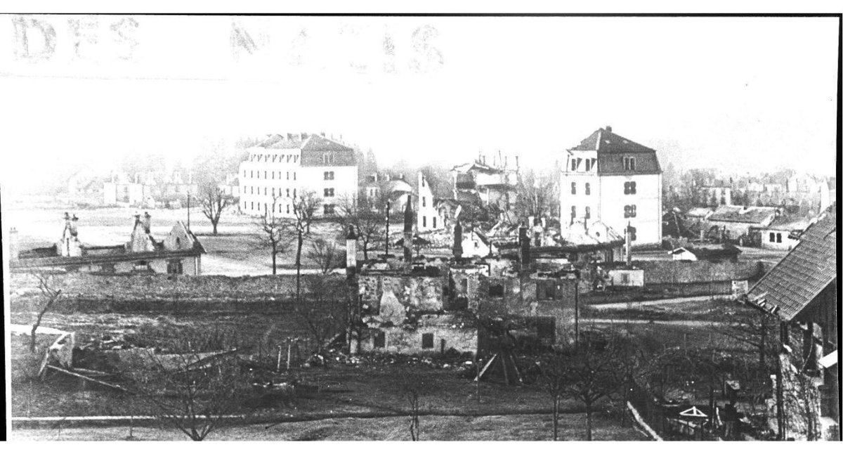 Photo du centre ville de Gérardmer, prise en 1944 ( https://www.montagnesdarchives.fr/la-liberation-de-gerardmer/)